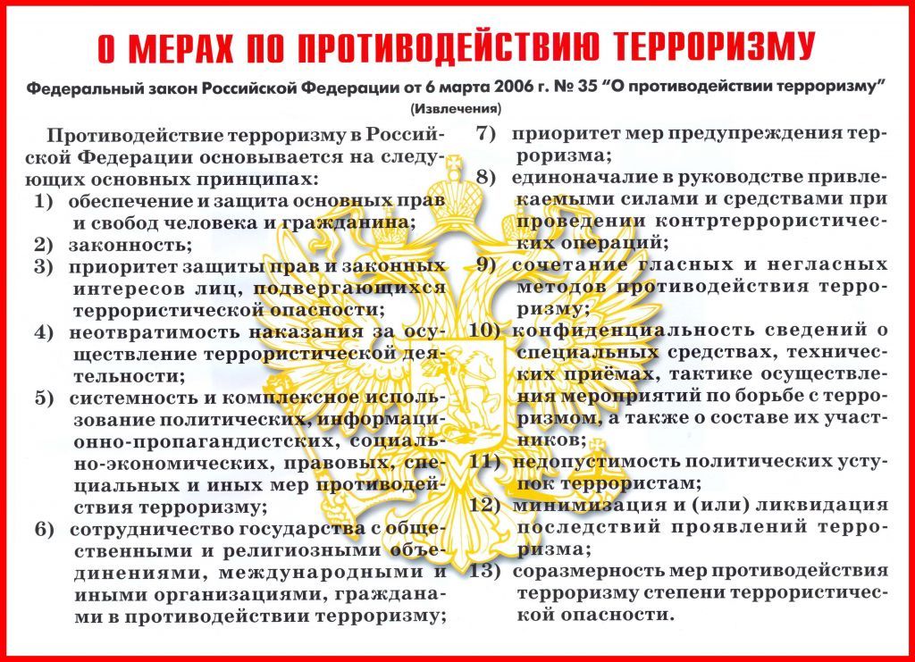 • информационное обеспечение в сфере антитеррористической деятельности;
